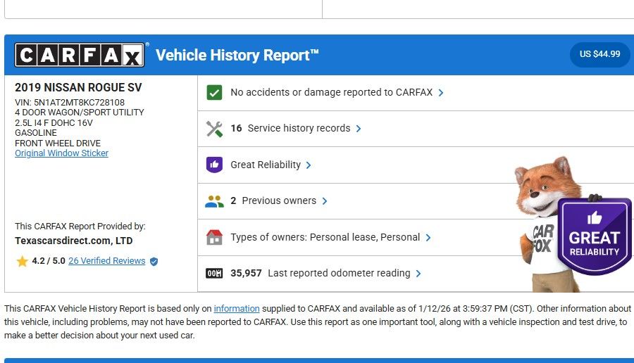 We offer free Carfax vehicle history reports on our website.