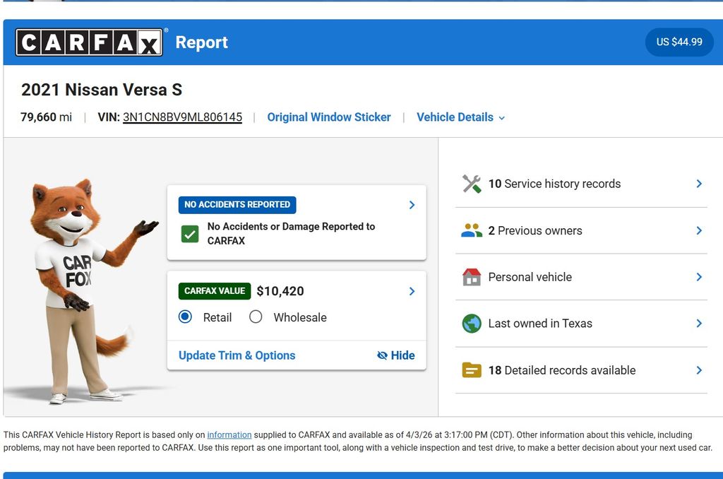 Discover the perfect balance of style, efficiency, and affordability with this 2021 Nissan Versa 1.6 S. This meticulously maintained vehicle boasts a Clean CARFAX history, ensuring a worry-free ownership experience.