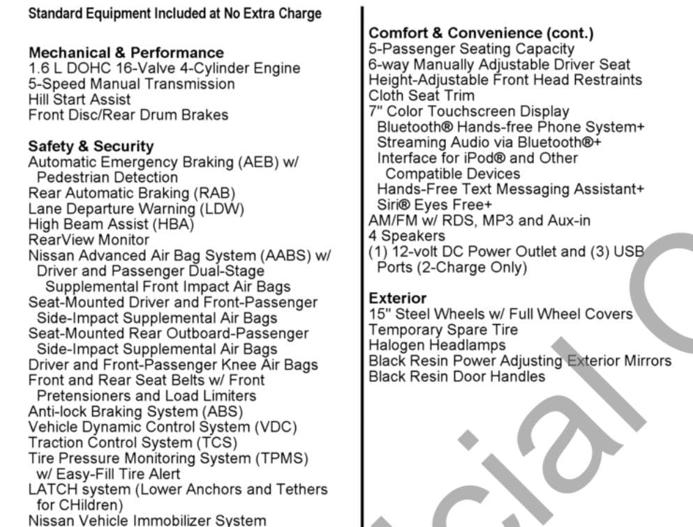 2021 Nissan Versa 1.6 S Clean Carfax/Manual Transmission/35MPG