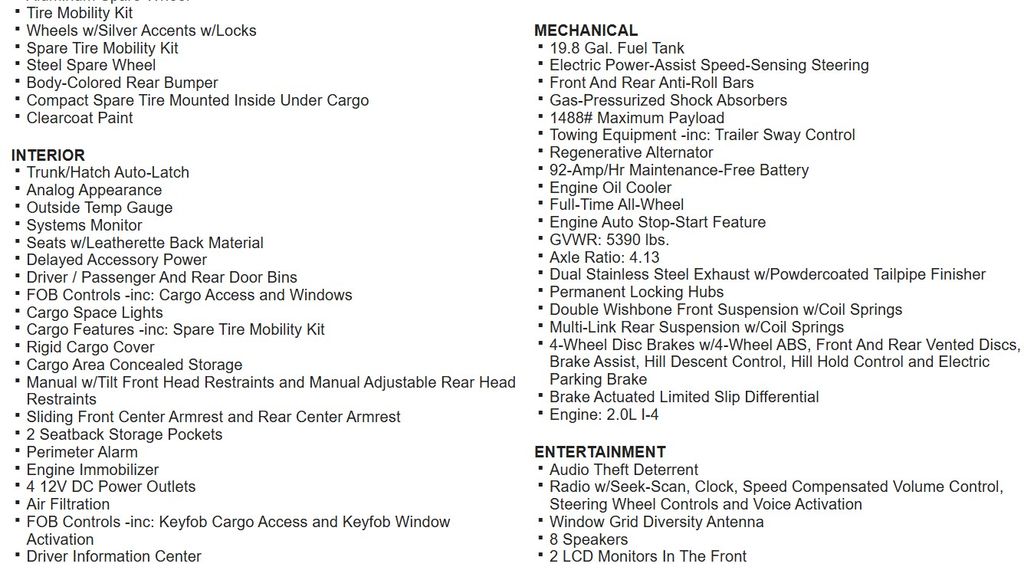 - Interior maximum cargo volume: 1,501 L (53 cu.ft.)
