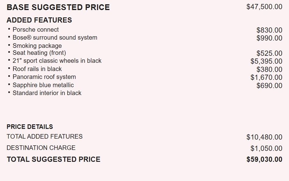 I was looking to upgrade my Benz to a SUV, well after buying 8 Benz they were a little slow to react to my needs. Then I decided to look at some other options, Porsche was never on the table, until I really got frustrated in the other options available. So I went to the local Porsche dealer here in Las Vegas and when you walk into a Porsche dealership you sorta get overwhelm by all the exotic colors and models, quite impressive. I decided to test drive the 2019 Macan base, since I my expectations of a Porsche it would be fast and of a high quality. I WAS AMAZED, at the overall presentation of this vehicle. The ride feels like a luxury sedan ride and great inside appointments, however you sit high enough that you know your in a SUV. We also own a MB GLC great SUV, but I must say, It may be very hard to switch back. Great JOB PORSCHE !!!!! - 5.0