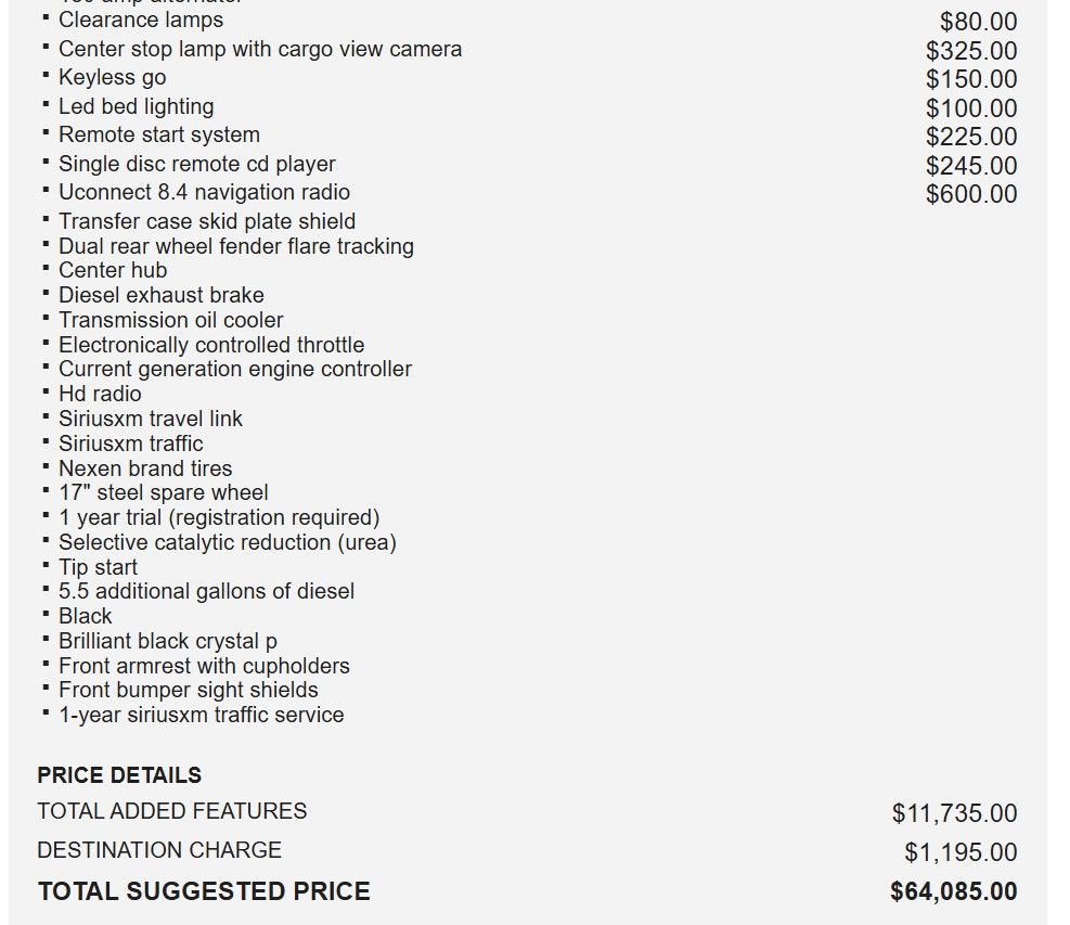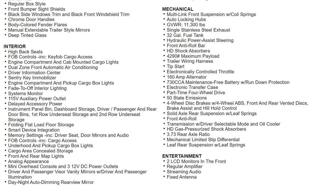 ⢠Cummins 6.7L I6 Turbodiesel engine with 180-amp alternator