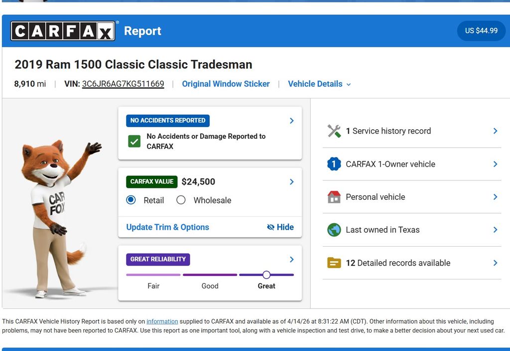 This 2019 Ram 1500 Classic Tradesman is a true gem, with its exceptional condition, low mileage, and impressive list of features. Don't miss your chance to own this remarkable vehicle â" schedule a test drive today and experience the difference for yourself.