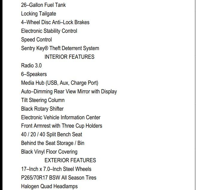 Inside, the 40/20/40 split bench seat with front center armrest offers exceptional comfort and versatility. The Media Hub with USB and AUX inputs keeps you connected on the go, while the radio with data system provides endless entertainment options.