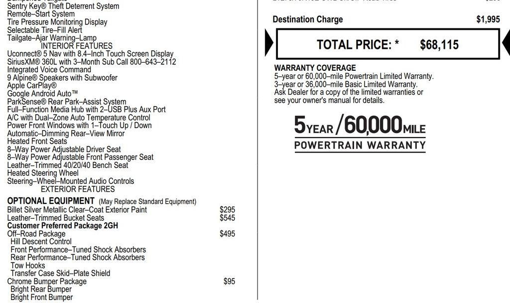 Night Edition package, ( never been off-roading , just like new)off rode tires, great for all extreme terrain and smoothe highway driving, good technology package includes 12 inch touch screen, premium sound package with a subwoofer. I’ve had it for a year now and love this model.