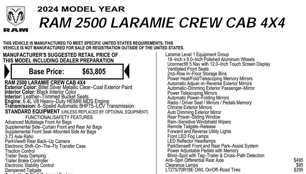 Whether you're tackling tough terrain or cruising down the highway, this 2024 Ram 2500 Laramie is the perfect companion. With its exceptional performance, premium amenities, and uncompromising quality, this truck is a true testament to Ram's commitment to excellence.