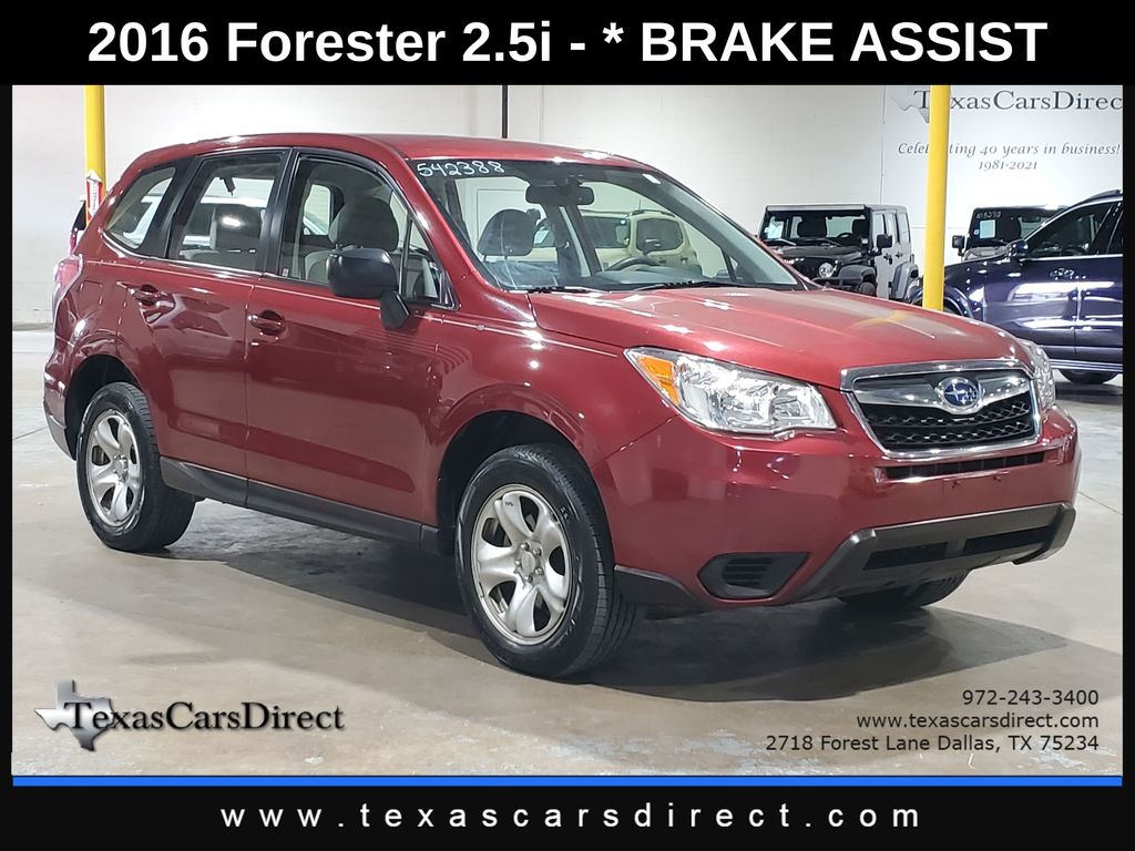 Discover the perfect balance of performance, versatility, and style with this 2016 Subaru Forester 2.5i 1-OWNER CLEAN CARFAX/CAMERA/BLEUTOOTH. This well-maintained SUV boasts a sleek red exterior and a spacious, well-equipped interior that's ready to take on your daily adventures.