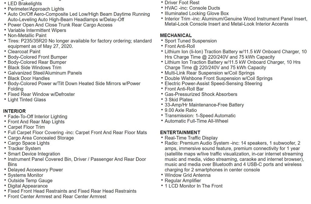 - Electric motor horsepower: 184hp @ 6,380RPM