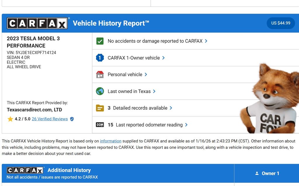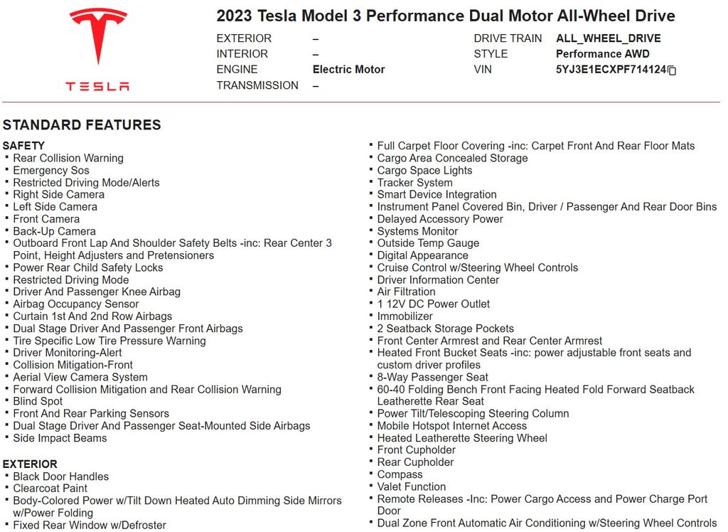 2023 Tesla Model 3 Performance LOW Mile 1-Owner Clean Carfax/Paid FOR