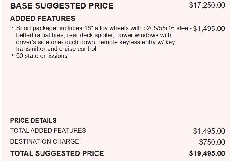 Sale Price plus TCD Advantage Program ($995) protecting your vehicle wheels against curb rash, windshield cracks, chips, or up to $500 toward replacement, interior stains and tears, exterior paint protection against environmental hazards, paintless dent repair, and roadside assistance!