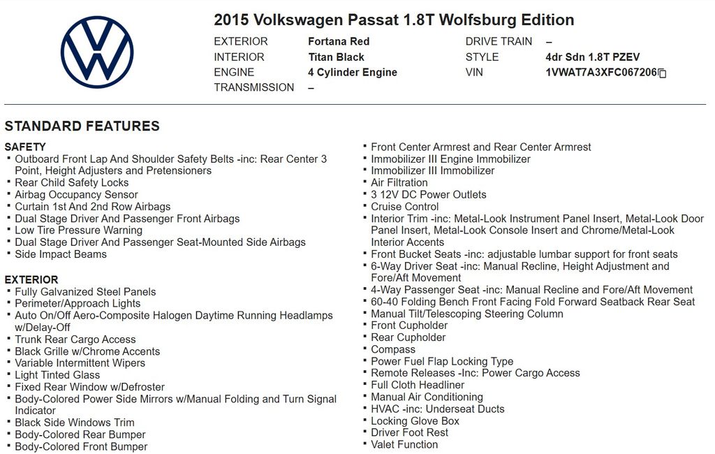 Discover the perfect blend of style, efficiency, and convenience in this 2015 Volkswagen Passat 1.8T S. With its sleek design, impressive fuel economy, and a host of premium features, this sedan is the ideal choice for the discerning driver.
