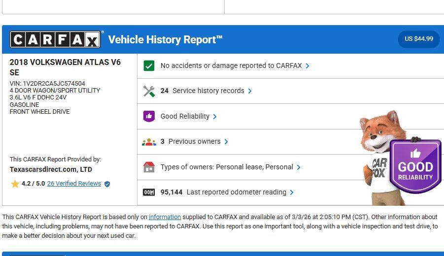 2018 Atlas SE technology V6,3.5L,FWD(2WD),Gas, Just completed 200,000 Two Hundred thousand miles,Still Running Great.