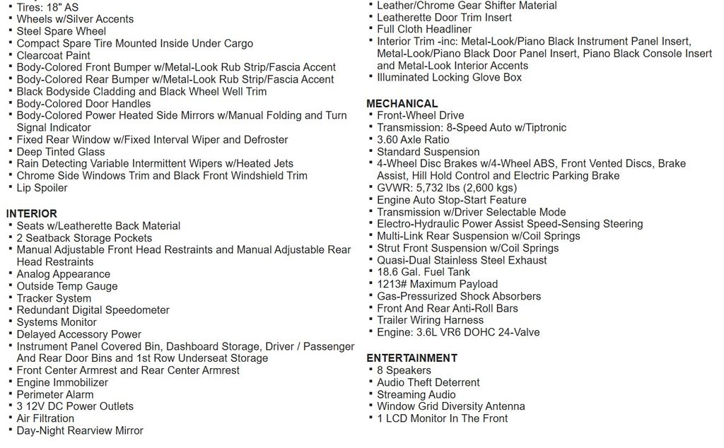- Interior maximum cargo volume: 2,741 L (97 cu.ft.)