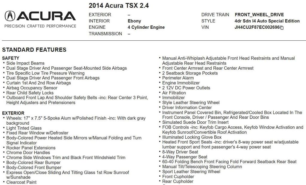 Don't miss your chance to experience the exceptional combination of style, technology, and performance that this 2014 Acura TSX 2.4 SPECIAL EDITION has to offer. Visit our showroom today and let our knowledgeable sales team guide you through a test drive. We're confident you'll be impressed by this exceptional vehicle.