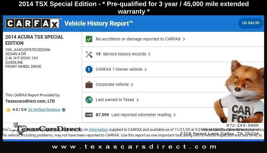 2014 Acura TSX 2.4 Special Edition/1-Owner Clean Carfax/HTD Seats