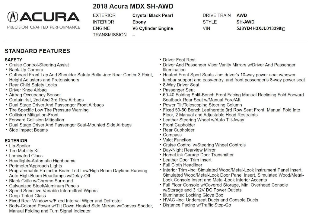 Heated Front Sport Seats -inc: driver's 10-way power seat w/power lumbar support and easy-entry, and front passenger's 8-way power seat, 8-Way Driver Seat, HomeLink Garage Door Transmitter, Back-Up Camera