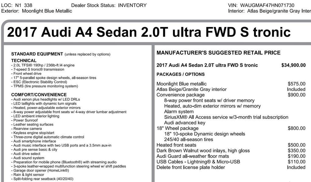 18 WHEEL PACKAGE, CONVENIENCE PACKAGE, HEATED FRONT SEATS