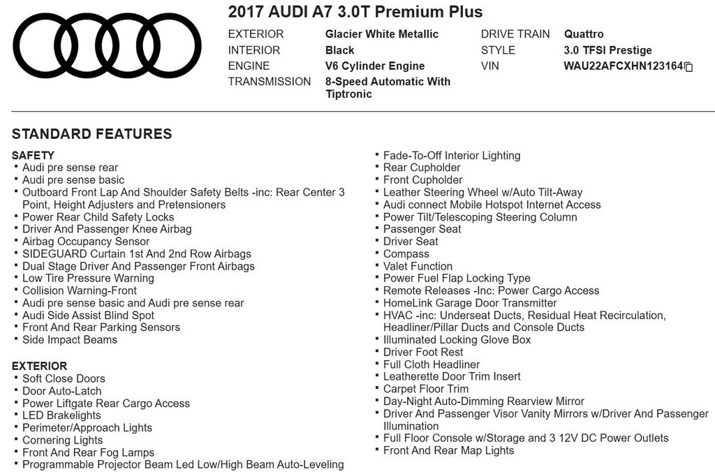 Slip behind the wheel of this meticulously maintained 2017 Audi A7 3.0T Prestige QUATTRO and experience the ultimate in luxury, performance, and technology. With just 91,768 miles on the odometer, this vehicle is primed to deliver years of exceptional driving pleasure.
