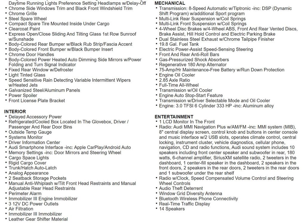 Powered by a potent 3.0L V6 Turbocharged engine, this A7 delivers an exhilarating 333 horsepower, seamlessly channeled through an 8-Speed Automatic transmission with Tiptronic and quattro all-wheel drive. With an impressive 29 MPG on the highway, this Audi combines exceptional performance with impressive fuel efficiency.