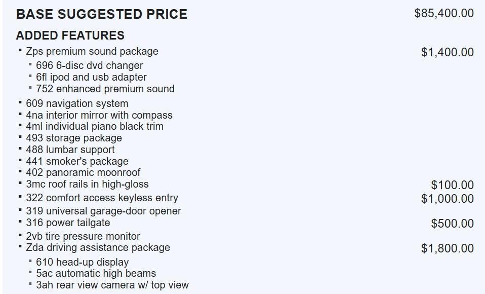 COLD WEATHER PKG, DRIVER ASSISTANCE PKG, PREMIUM SOUND PKG, HIGH GLOSS ROOF RAILS, PWR TAILGATE RELEASE, SATELLITE RADIO, COMFORT ACCESS KEYLESS ENTRY