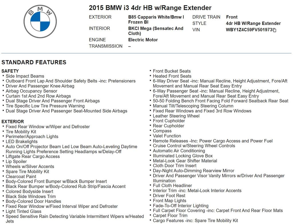 Discover the perfect blend of efficiency and style with this 2015 BMW i3 with Range Extender. This low-mileage, clean CARFAX gem is packed with premium features that will elevate your driving experience.