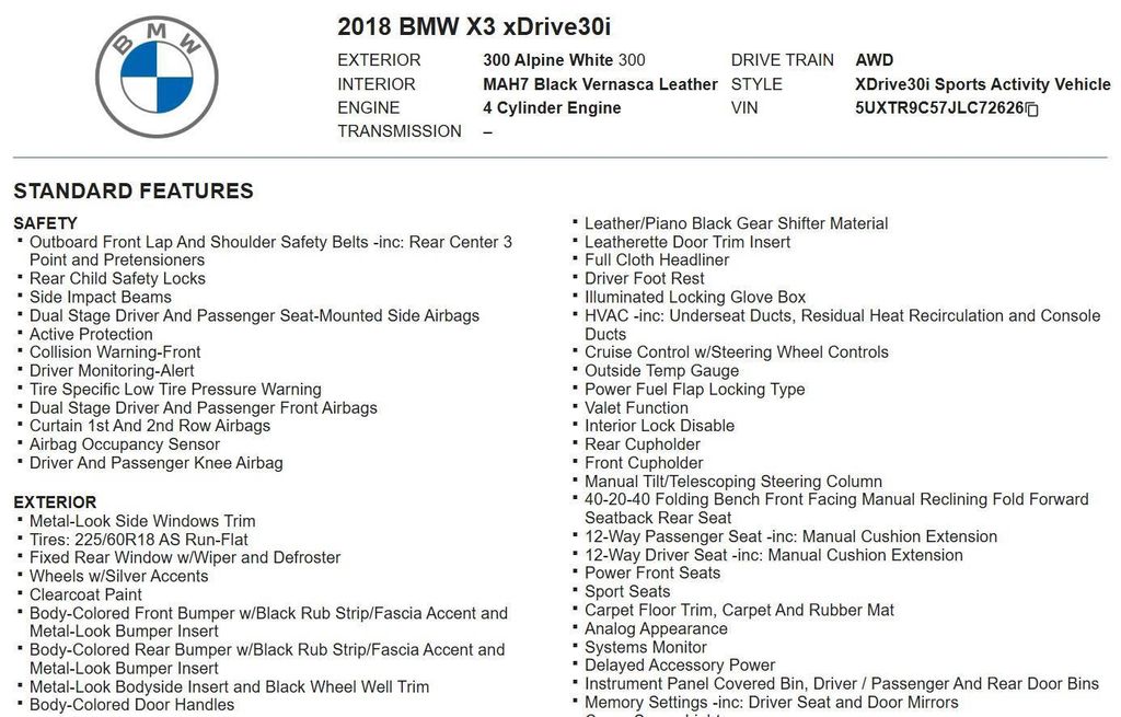 Meticulously cared for and loaded with premium amenities, this 2018 BMW X3 xDrive30i is a true standout in the luxury SUV segment. With a clean CARFAX and over $8,000 in added options, this vehicle represents exceptional value and a remarkable opportunity for the discerning buyer.