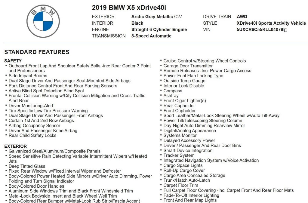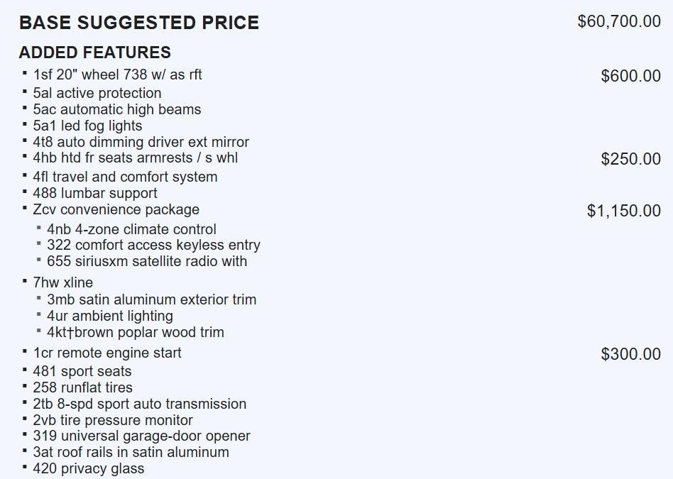 WHEELS: 20 X 9 V-SPOKE (STYLE 738), SPORT SEATS, ANTHRACITE-BROWN POPLAR MATTE FINISH WOOD TRIM, CONVENIENCE PACKAGE, REMOTE ENGINE START, HEATED FRONT SEATS W/ARMRESTS & STEERING WHEEL, GESTURE CONTROL