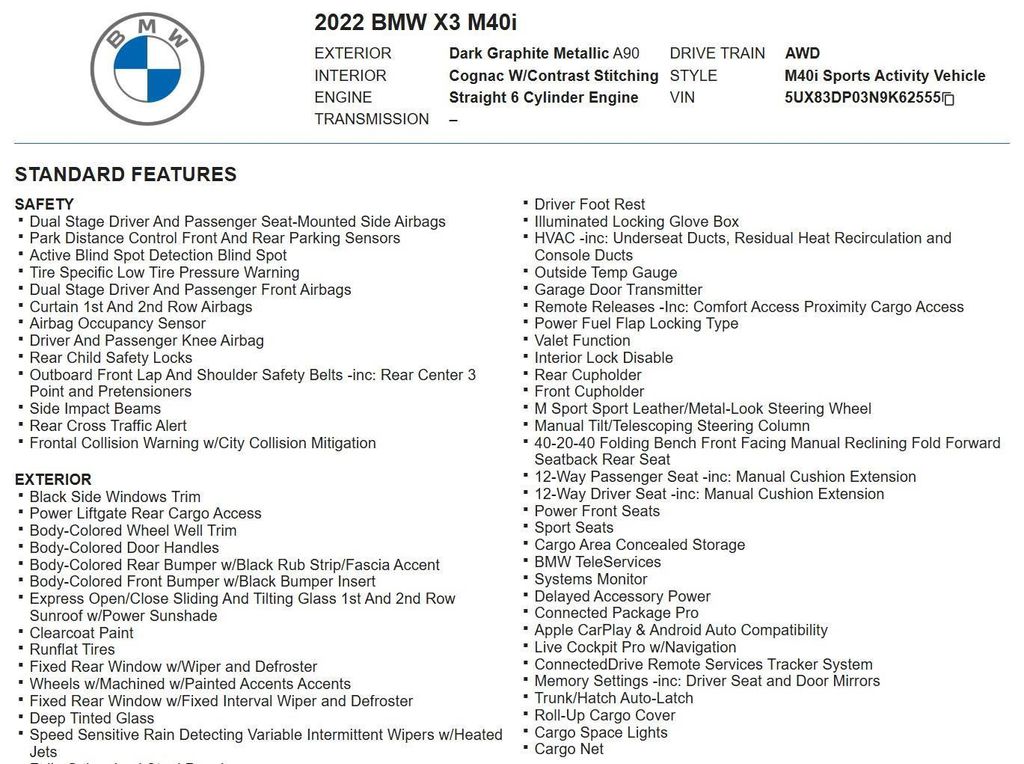 2022 BMW X3 M40i 1-Owner Clean Carfax/Premium-$10K Options