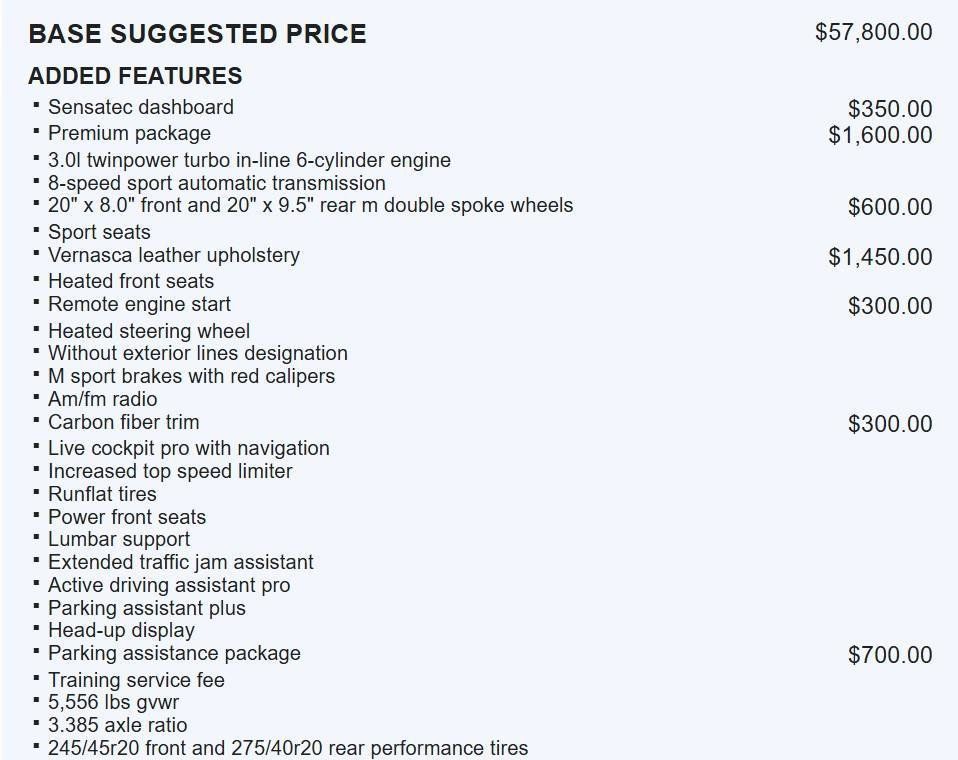The BMW X3 M40i also comes equipped with the DRIVING ASSISTANCE PROFESSIONAL PACKAGE, PREMIUM PACKAGE, and PARKING ASSISTANCE PACKAGE, elevating your driving experience to new heights. Enjoy the added benefits of Vernasca Leather Upholstery, Carbon Fiber Trim, and 20-inch M Double Spoke Wheels.