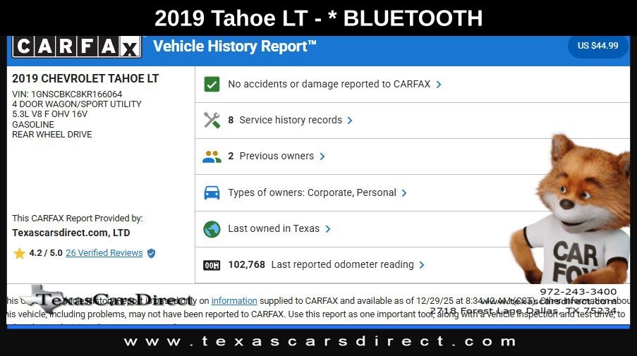With a Clean CARFAX report and over $9,000 in added options, this 2019 Chevrolet Tahoe LT represents an exceptional value. Don't miss your chance to make this impressive SUV your own.