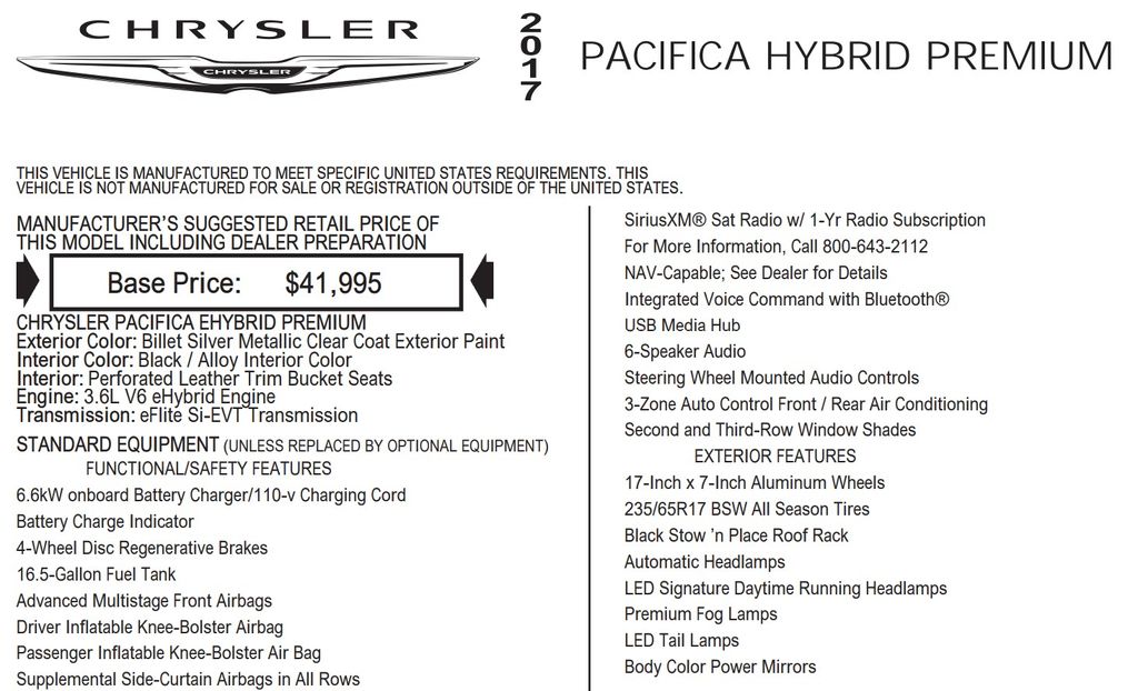 Discover the power and efficiency of the Pacifica Hybrid's 3.6L V6 engine, delivering a seamless driving experience with its continuously variable transmission and front-wheel-drive configuration. Enjoy the confidence of the Pacifica's heavy-duty suspension, four-wheel independent suspension, and advanced safety features, including electronic stability control, airbags, and brake assist.