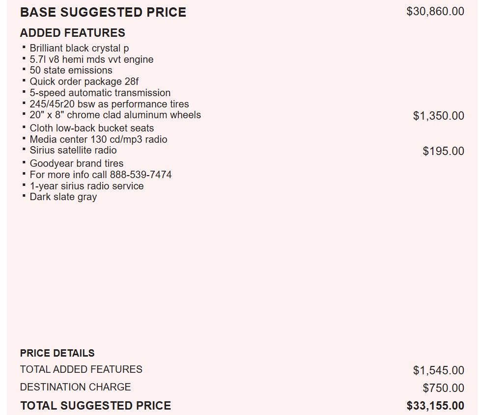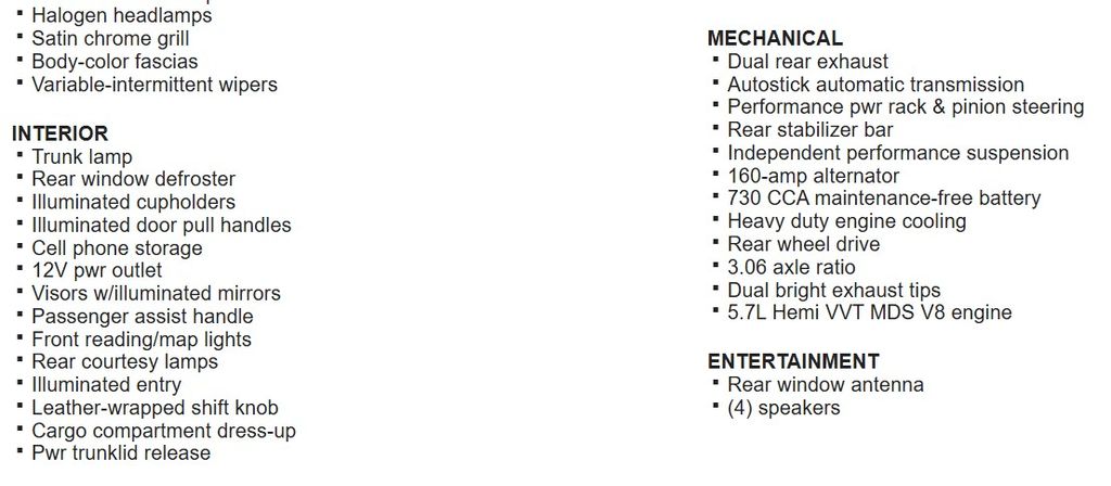 ⢠Powerful HEMI 5.7L V8 engine with 5-speed automatic transmission