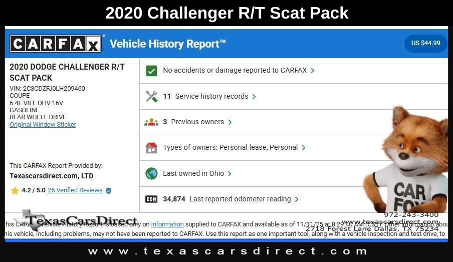This 2020 Dodge Challenger R/T Scat Pack, has Pitch Black Clearcoat exterior and Black interior color. 35,150 miles. Stock Number 209460. You can connect with us by calling 972-243-3400.