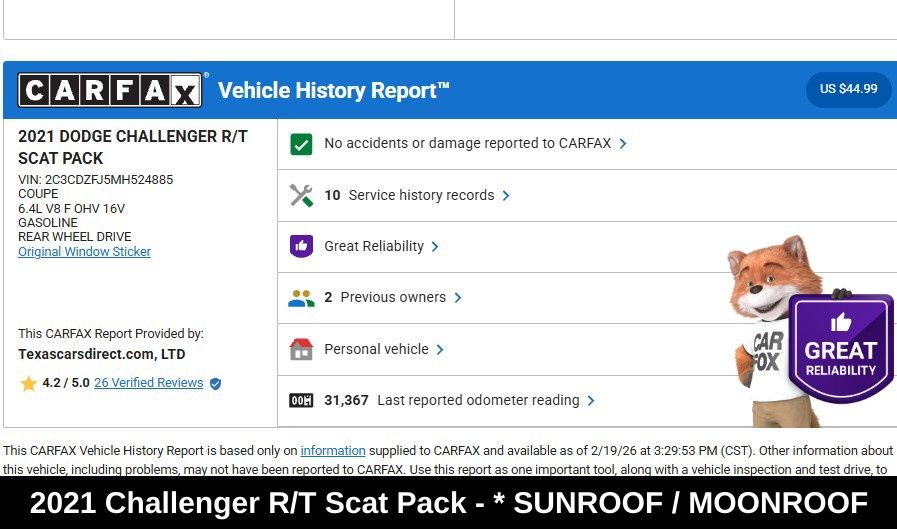 2021 Dodge Challenger R/T Scat Pack 6.4L Hemi/Clean Carfax/Auto/Sunroof