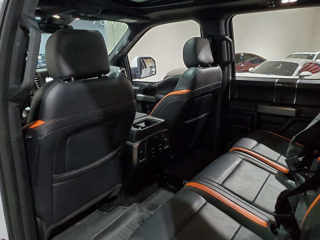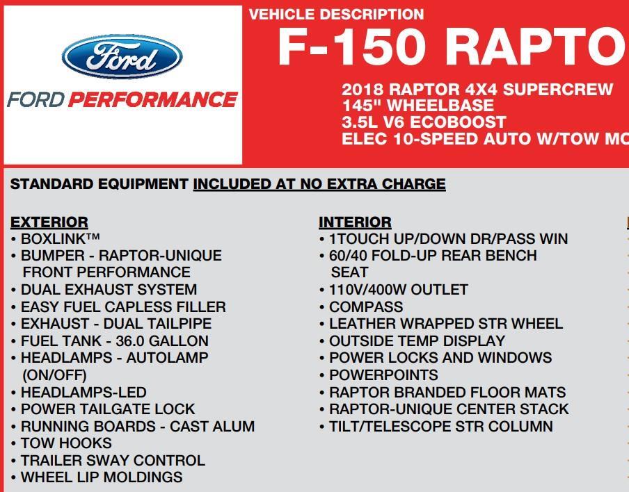 - Includes vehicle with standard equipment, 10-way power driver and passenger seats, passenger seat power lumbar adjustment, heated and ventilated front seats, front seat memory settings, leather seating surfaces, power-adjustable pedals with memory, power tilt and telescoping steering column with memory settings, heated steering wheel, ambient lighting, dual-zone electronic automatic temperature control (DEATC), power sliding rear window with privacy tint and defrost, FORD tailgate applique, power folding and power glass exterior mirrors with heat, turn signals, drivers side auto-dimming feature, LED spotlights with high-intensity LED security approach lamps, body-color skull caps, and memory settings, LED box lighting, Intelligent Access, push-button start, remote start system, remote tailgate release, universal garage door opener, Advanced Security Pack with SecuriLock Passive Anti-Theft System (PATS) and inclination and intrusion sensors, Blind Spot Information System (BLIS), Cross-Traffic Alert, and trailer tow monitoring (BLIS sensor in taillamp), 360 degree camera, Pro Trailer backup assist, inflatable rear safety belts, 4.10 front axle with torsen differential, integrated trailer brake controller, B&O PLAY premium single-CD audio system, HD radio, SiriusXM Radio, voice-activated navigation system with SiriusXM Traffic and Travel Link, SYNC Connect, and SYNC 3 enhanced voice recognition communications and entertainment system with 911 Assist, AppLink, Apple CarPlay, Android Auto, 8 inch LCD touchscreen in center stack, 4.2 inch productivity screen in instrument cluster, two smart charging USB ports, compass and clock display. SiriusXM Traffic and Travel Link include a 5 year prepaid subscription in the 48 contiguous United States and D.C.
