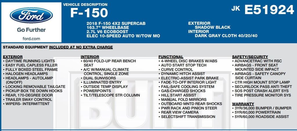 This well-equipped F-150 also features a host of convenience and safety features, including power windows, power door locks, MyKey, and a perimeter alarm system. The XL Power Equipment Group adds even more value, with features like power mirrors, power tailgate lock, and illuminated entry.