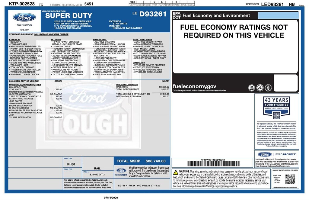 ENGINE: 6.7L 4V OHV POWER STROKE V8 TURBO DIESEL B20