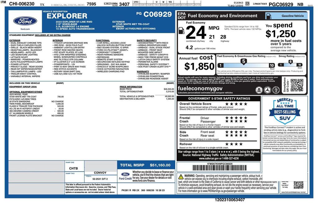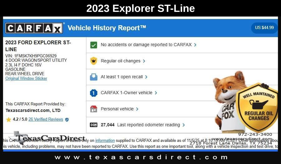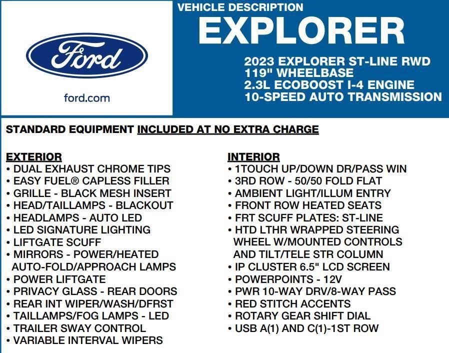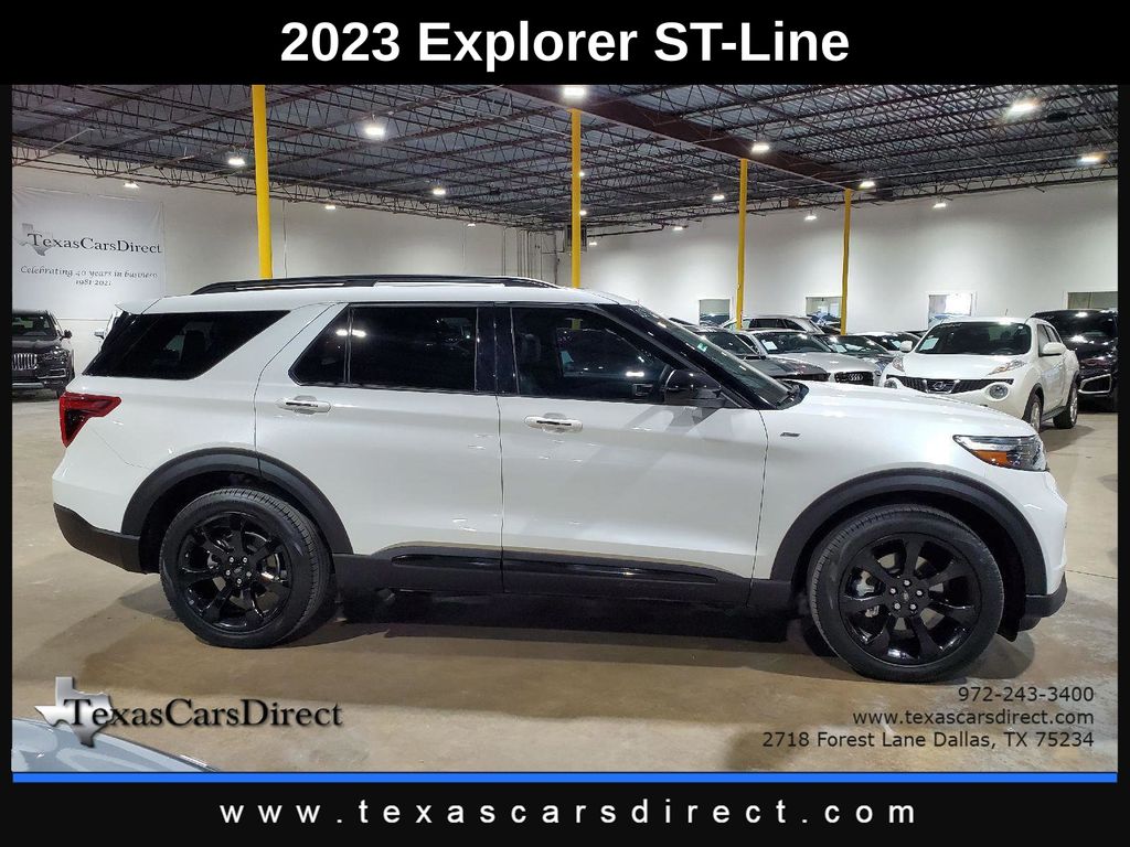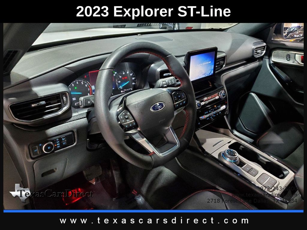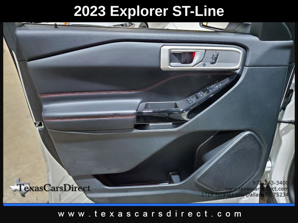 This 2023 Ford Explorer ST-Line, has Star White Metallic Tri-Coat exterior and Ebony w/Red Stitching interior color. 32,003 miles. Stock Number C06929. You can connect with us by calling 972-243-3400.