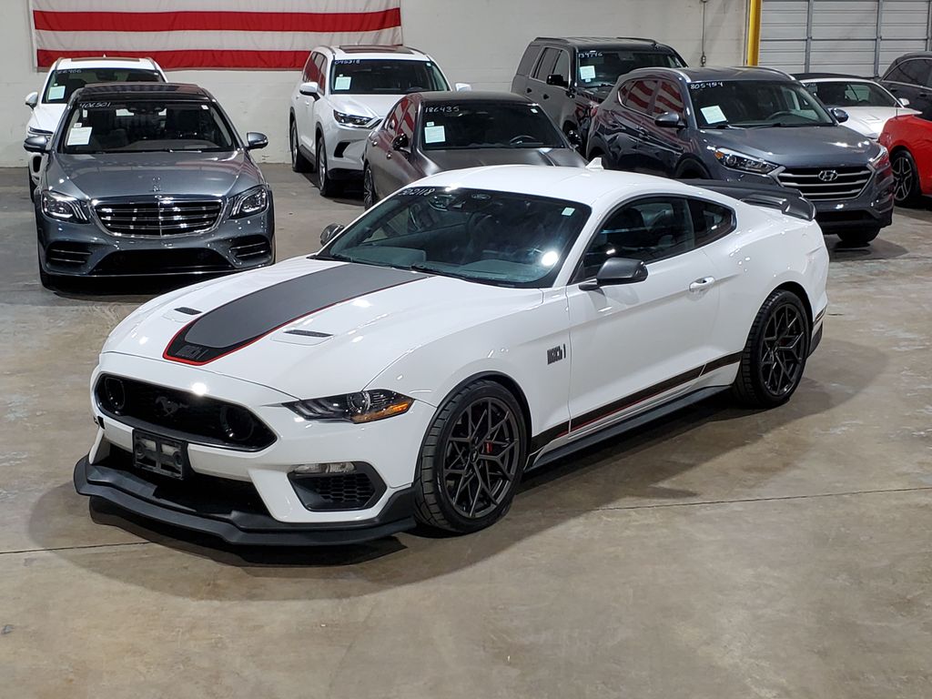 Meticulously crafted with your needs in mind, this Mustang Mach 1 boasts a stunning White exterior that commands attention. Step inside and be greeted by the luxurious Leather-Trimmed Bucket Seats with Color Accents, creating a cabin that exudes style and sophistication.