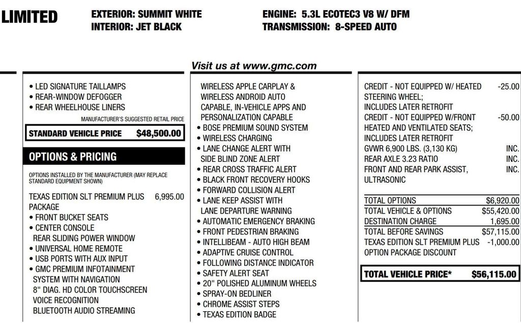 Safety and technology are also at the forefront, with features like Adaptive Cruise Control, Blind Spot Monitoring, and the premium GMC Infotainment System with Navigation keeping you connected and secure.
