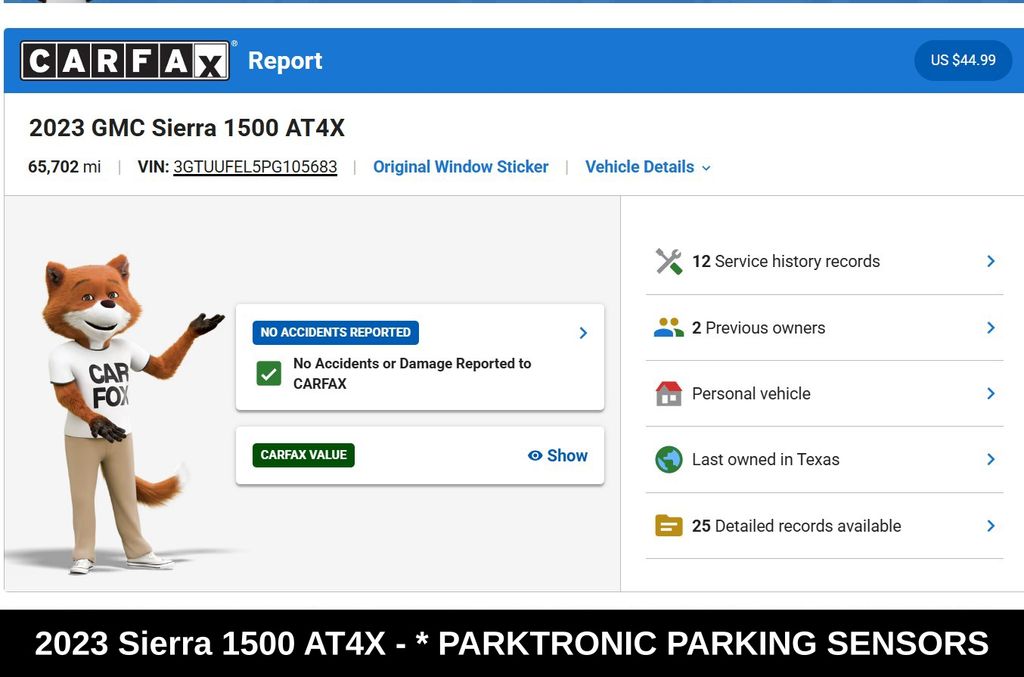 Experience the ultimate in capability, technology, and refinement with this 2023 GMC Sierra 1500 AT4X. We offer free Carfax vehicle history reports on our website.