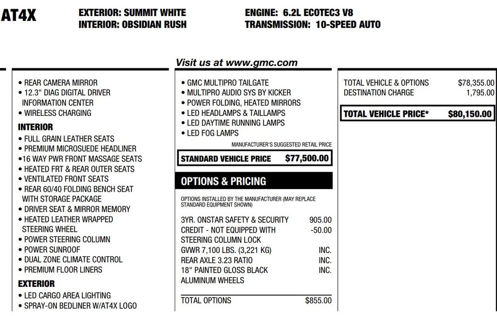 - Emergency communication system: OnStar and GMC connected services capable
