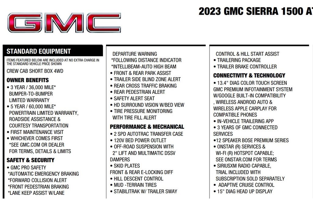 Discover the ultimate in power, capability, and technology with this 2023 GMC Sierra 1500 AT4X 6.2L V8 Crew Cab 4WD. This exceptional vehicle boasts an impressive array of features that elevate your driving experience to new heights.