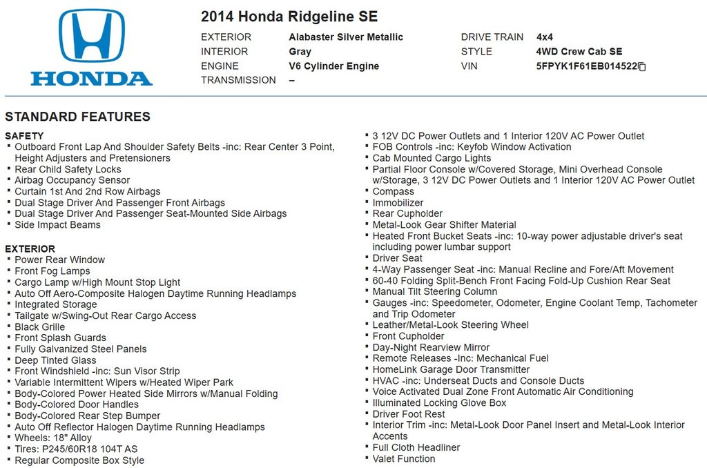 Discover the perfect blend of power, utility, and comfort with this 2014 Honda Ridgeline SE 4WD. This exceptional truck offers a remarkable combination of features that cater to your every need.