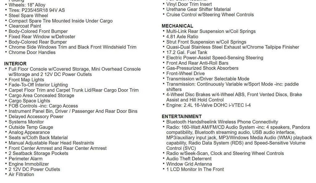 Wheels: 18" Alloy, Bluetooth Handsfreelink Wireless Phone Connectivity, Back-Up Camera