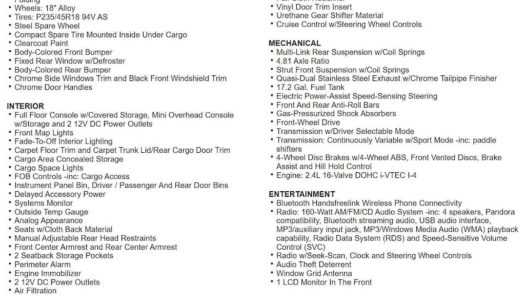 Wheels: 18 Alloy, Bluetooth Handsfreelink Wireless Phone Connectivity, Back-Up Camera