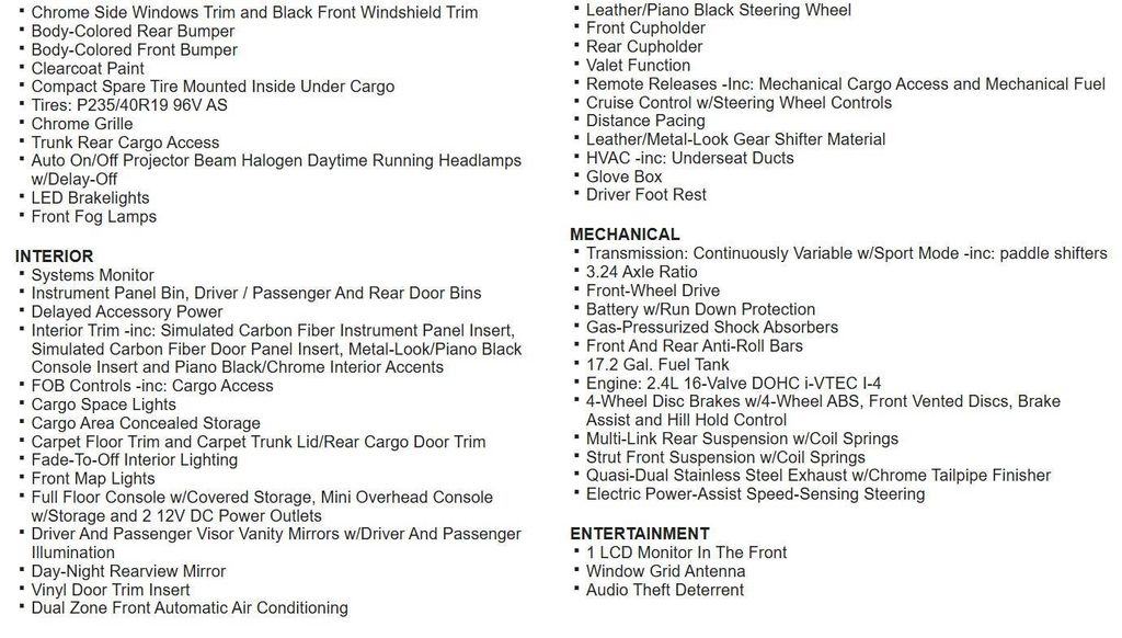 - Transmission: continuously variable automatic