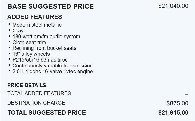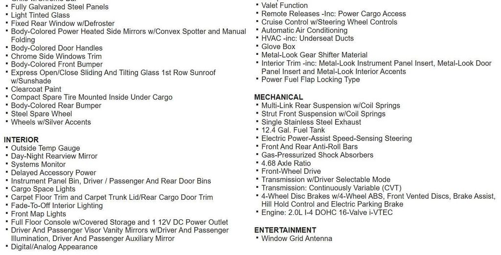 - Transmission: continuously variable automatic