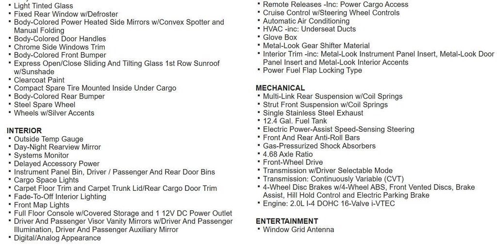 Express Open/Close Sliding And Tilting Glass 1st Row Sunroof w/Sunshade, 6-Way Driver Seat -inc: Manual Recline and Fore/Aft Movement, Cruise Control w/Steering Wheel Controls, Back-Up Camera