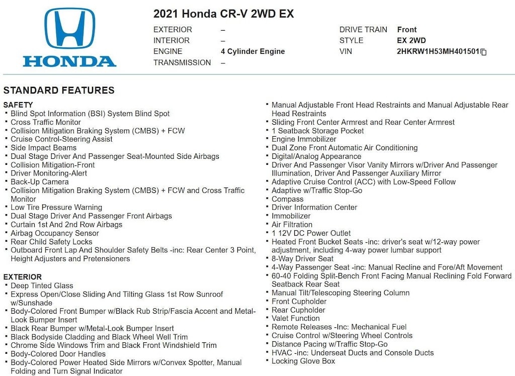 Heated Front Bucket Seats -inc: driver's seat w/12-way power adjustment, including 4-way power lumbar support, Adaptive Cruise Control (ACC) with Low-Speed Follow, Blind Spot Information (BSI) System Blind Spot, Back-Up Camera